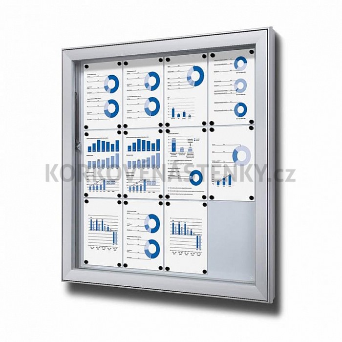 Popis: Venkovní magnetická uzamykatelná vitrína hluboká 1012 × 1054 mm (12 × A4)