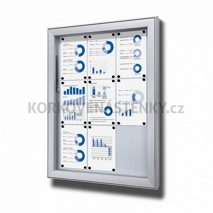 Popis: Venkovní magnetická uzamykatelná vitrína hluboká 792 × 1054 mm (9 × A4)